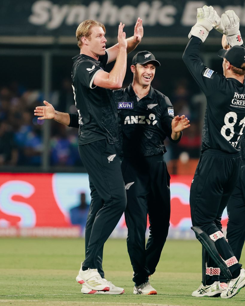 न्यूजीलैंड के लिए जकारी फॉल्कस और क्रिस्टन क्लार्क ने 3-3, जबकि जायडेन लेनॉक्स ने 2 विकेट लिए। काइल जैमिसन को 1 विकेट मिला। डेरिल मिचेल प्लेयर ऑफ द मैच रहे।