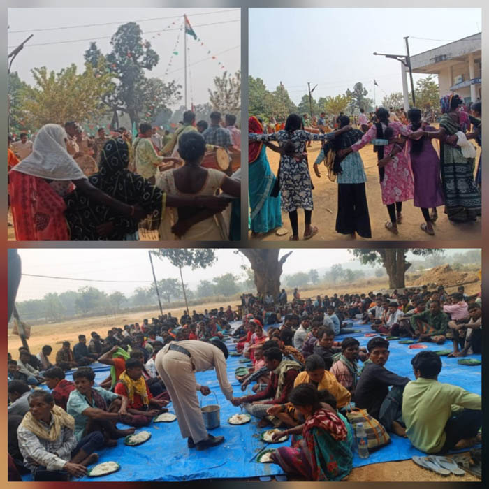 इस अवसर पर सभी उपस्थित लोगों ने “नक्सल मुक्त गंगालूर” बनाने की सामूहिक शपथ ली। पुनर्निर्माण में सक्रिय सहयोग का संकल्प व्यक्त किया। इस दाैरान सिविक एक्शन कार्यक्रम के तहत महिलाओं को साड़ी एवं पुरूषों को चरण पादुका (चप्पल) वितरित किये गये। कार्यक्रम में थाना गंगालूर से थाना प्रभारी निरीक्षक गिरीश तिवारी के साथ उप निरीक्षक एम.एस. पैंकरा, पन्नालाल चन्द्रवंशी, सउनि. पी. सुरेश राव, त्रिपुरारी राय, प्र.आर. राजाराम कड़ियाम के साथ समस्त थाना स्टाफ उपस्थित थे।