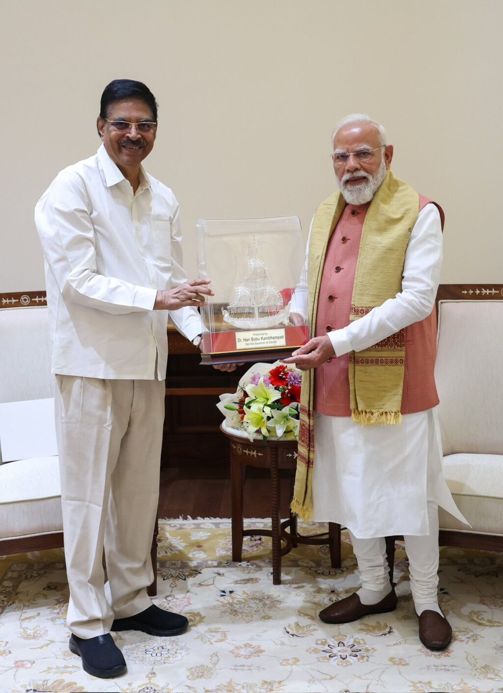डॉ. हरि बाबू ने एक्स पर कहा, “आज संसद में प्रधानमंत्री मोदी से मिलने का सौभाग्य प्राप्त हुआ। मैंने उन्हें ओडिशा में चल रहे विकास कार्यक्रमों, विभिन्न क्षेत्रों में हो रही निरंतर प्रगति और राज्य के विकास को और गति देने के लिए जारी प्रयासों के बारे में जानकारी दी।”